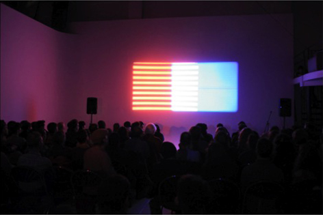 The second in a series of works that explore the nature of interpretation. In this case, a pair of 16mm projections are overlapped while being captured by an HD video camera. The analog component signal is fed into an audio mixer without any further filtering. All audio in the piece is produced by the camera's output. The video waveform is manipulated by the film projection to produce a real-time, synaesthetic cinematic experience using the artifacts of one medium interpreting another as raw material.